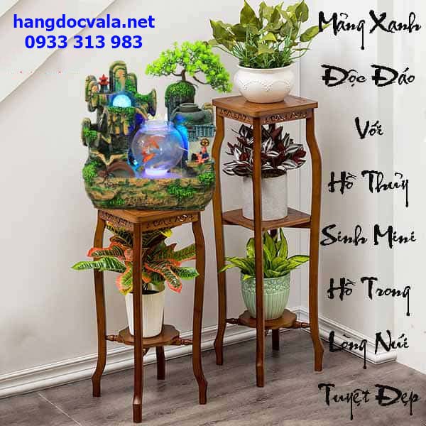 Hồ cá hòn non bộ mini - đồ trang trí kệ tivi phòng khách lạ mắt mát mẽ theo phong thủy