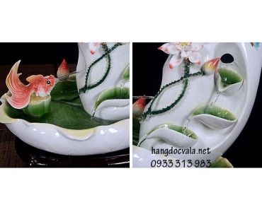 Thác nước phong thủy bằng Gốm Sen Xanh Ngọc Biếc "Cá chép phun châu" Với Chất Liệu từ gốm Sứ cao cấp, Tổng thể bề mặt Đài Phun Nước được Phủ Lớp Men Sáng Bóng Làm Nổi Bật Sự Sang Trọng. Tổng thê Cấu Trúc Đài phun nước mini mang nét sang trọng, Sự đơn giản nhẹ nhàng được Kết hợp với làn sương từ Máy Phun Sương độc đáo.