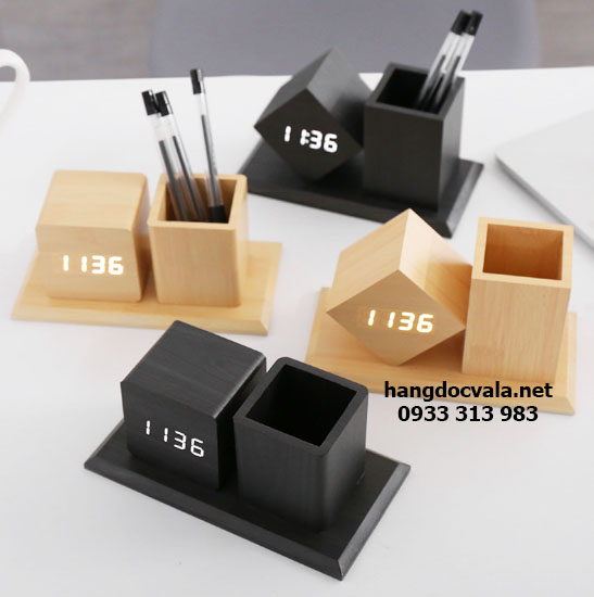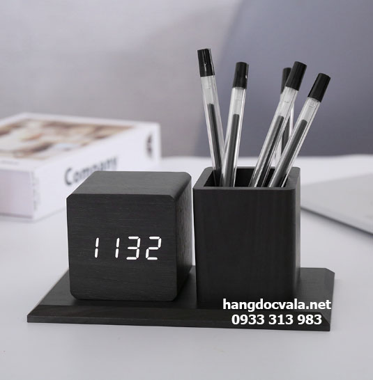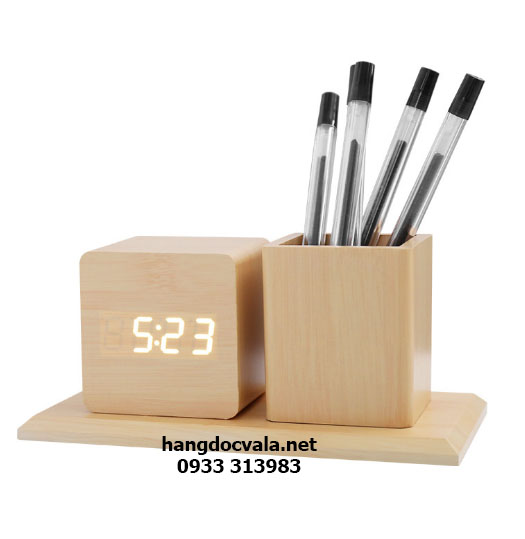 Đồng hồ led vân gỗ cao cấp kèm khay cắm bút để bàn độc đáo kết hợp chức năng hiển thị giờ giấc kèm với khay cắm bút viết tạo thành 1 sản phẩm hoàn hảo đặt tại bàn làm việc. Là mẫu đồng hồ để bàn dễ thương được nhiều doanh nghiệp lựa chọn làm quà tặng sự kiện độc đáo dành cho nhân viên văn phòng, khách hàng.