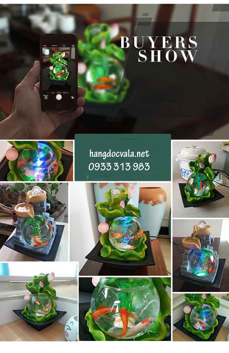 Hòn non bộ mini có thác nước phong thủy để bàn đồng thời là hòn non bộ mini nuôi cá - Bí quyết nuôi cá cảnh đơn giản ngay tại bàn làm việc.